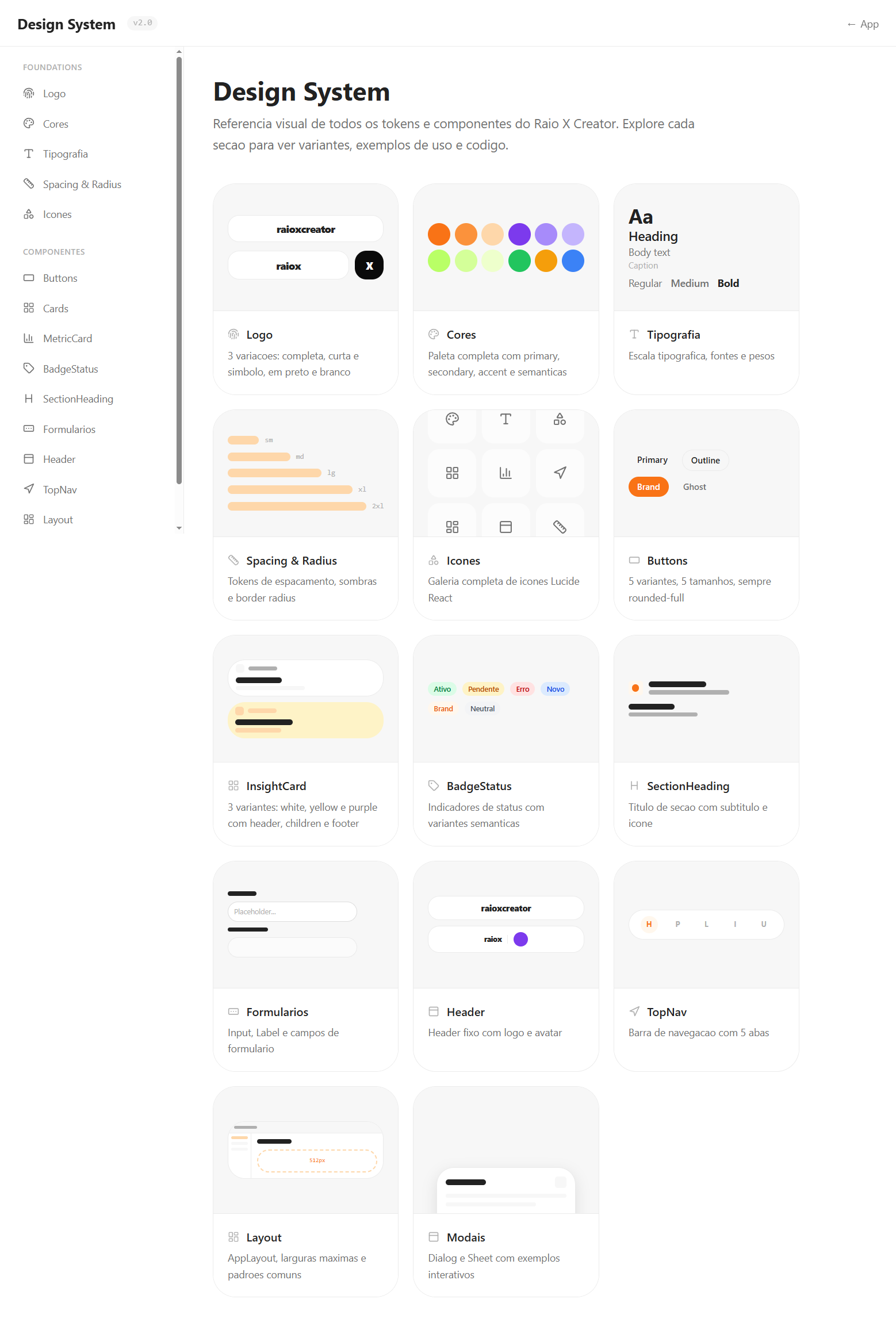 sistema documentado com tokens, componentes e exemplos de código — feito para que qualquer dev do time implemente interfaces consistentes usando Claude Code, sem depender de designer.