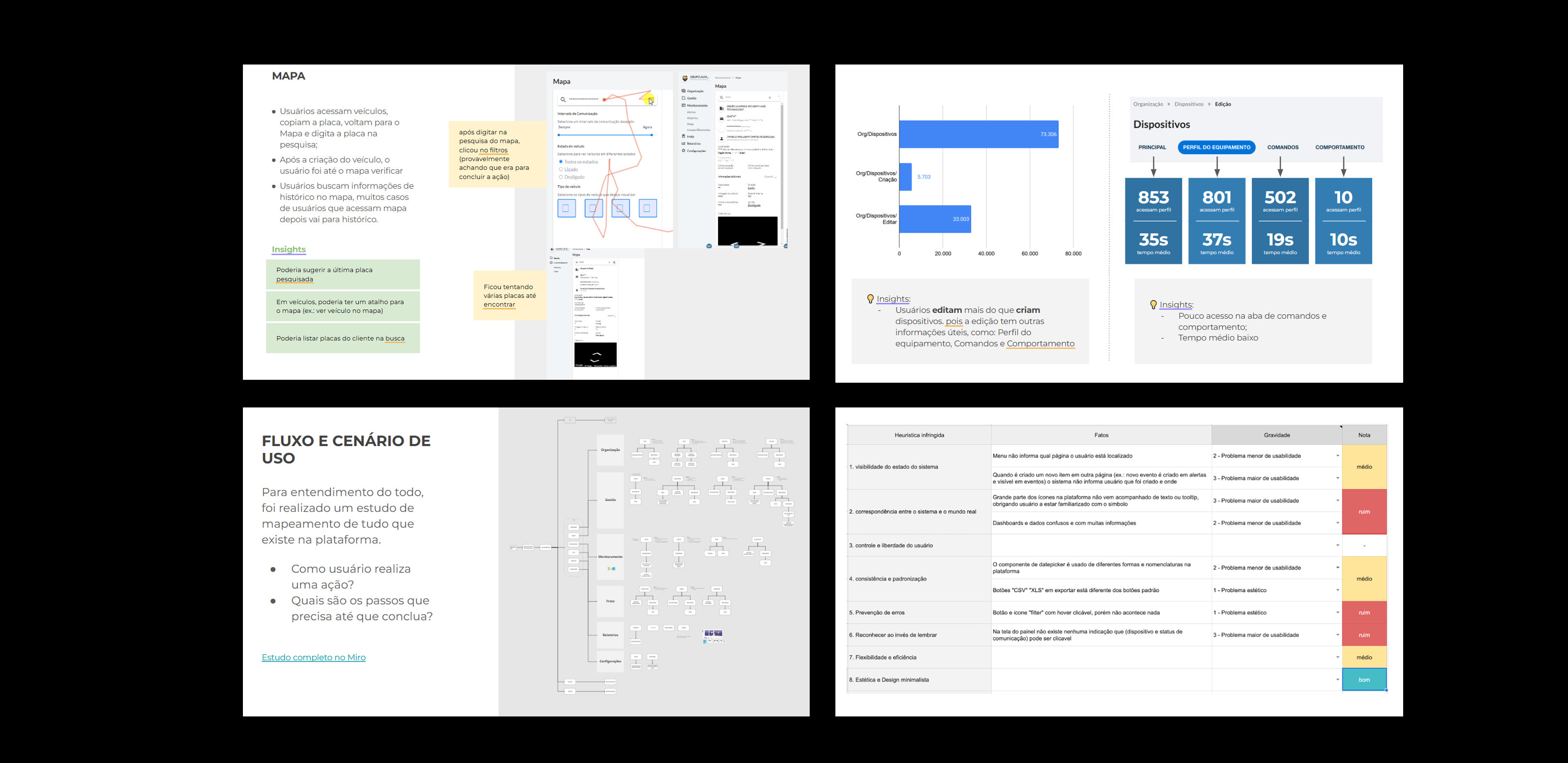 Comecei com pesquisa — entrevistando gestores de frota e motoristas para entender seus workflows diários, dores e o que "bom o suficiente" significava pra eles (spoiler: a barra era baixa, o que significava que pequenas melhorias tinham impacto desproporcional).